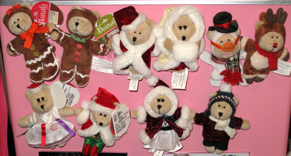 This is a larger size bearista and he is totally awesome! Not only is he adorable with the plaid scarf, snowman suit, top hat and carrot nose, but he also has a wind-up music box inside of him! When you wind him up he plays the song “We Wish You a Merry Christmas!” He is the 8th edition in the bearista series and he was born in 1999. Click the image for a larger photo. 🙂