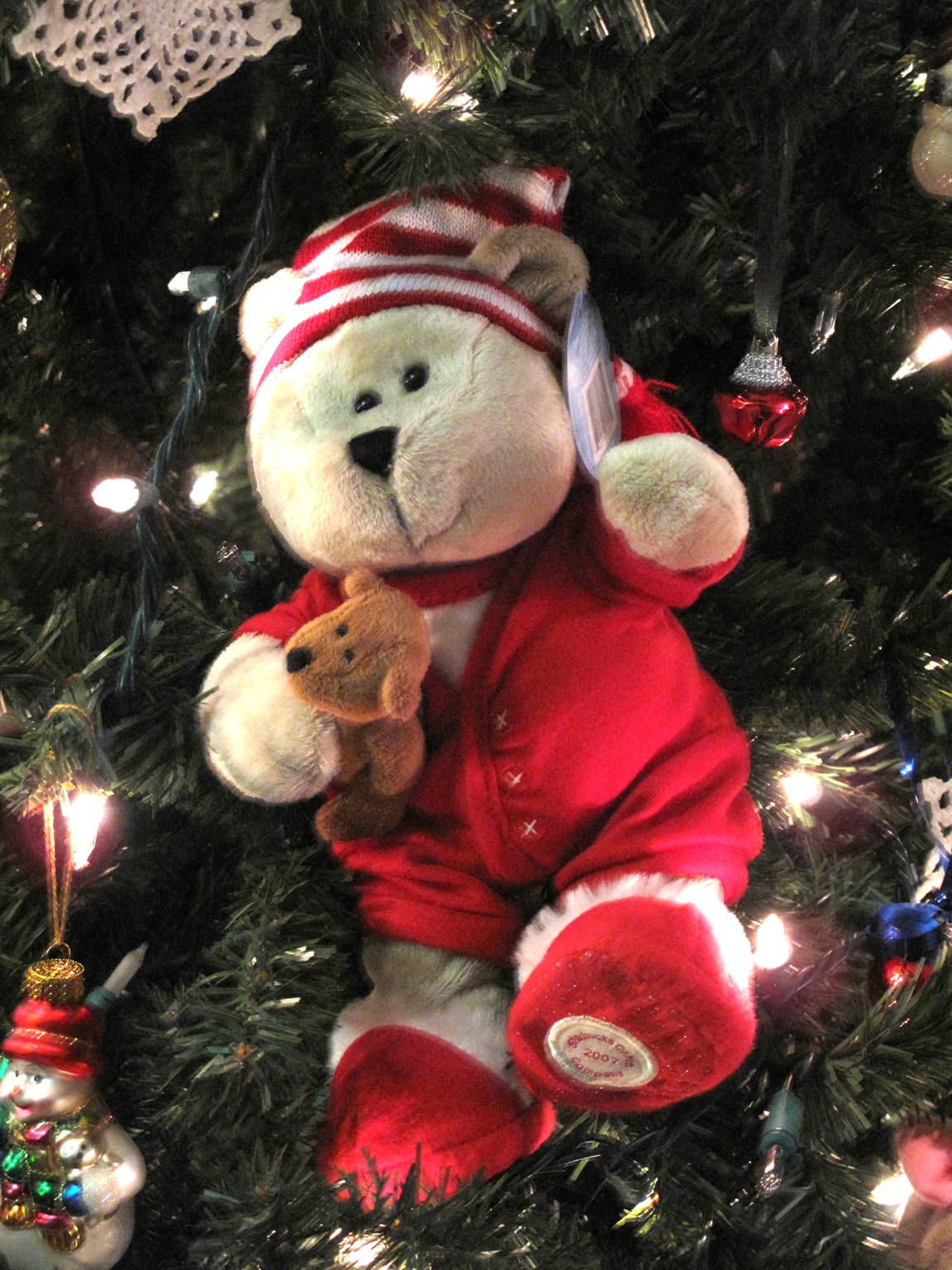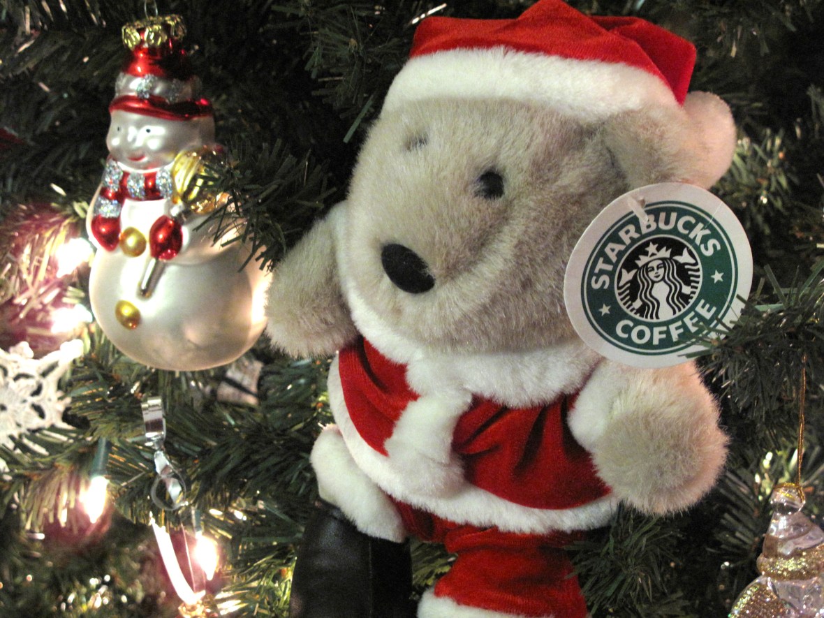 Wanted to share my Christmas bear tree and a few new (and old) Starbucks bears. The bear with the fur hat and the puppy with the green scarf are new for the 2011 holiday season at Starbucks. All of the other bears pictured here are from past seasons. Hopefully someday I’ll get around to posting them all properly. Until then, here they are! 🙂 Happy Holidays! Click images to enlarge. 🙂